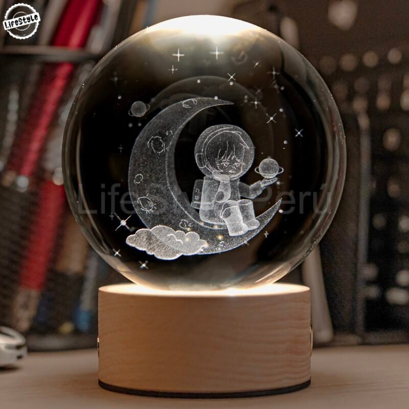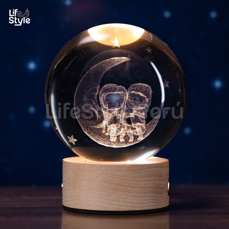 Lámpara cristal astronauta media luna