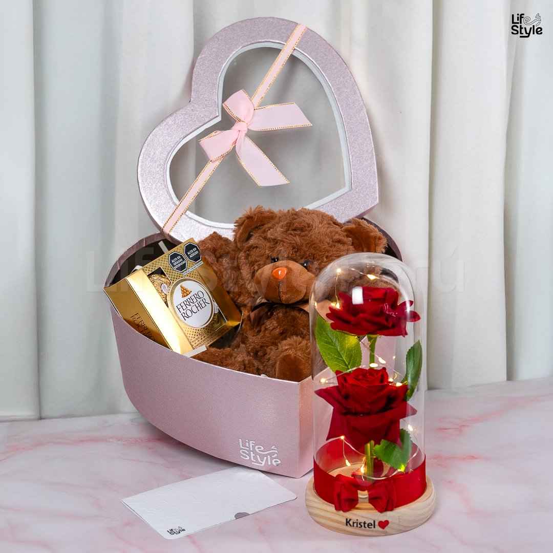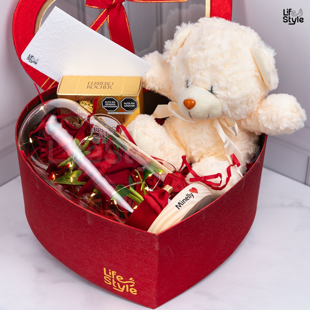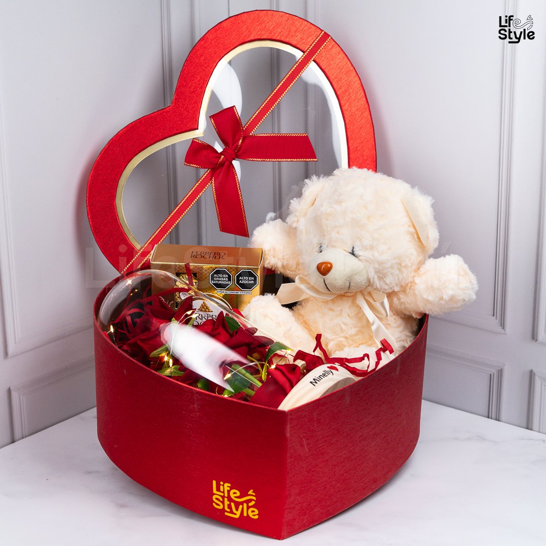 ❤️ Caja corazón con ventana (rojo o palo rosa): 28x25x12cm