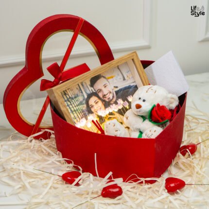 ❤️ Caja corazón con ventana (rojo o palo rosa): 31x28x13cm