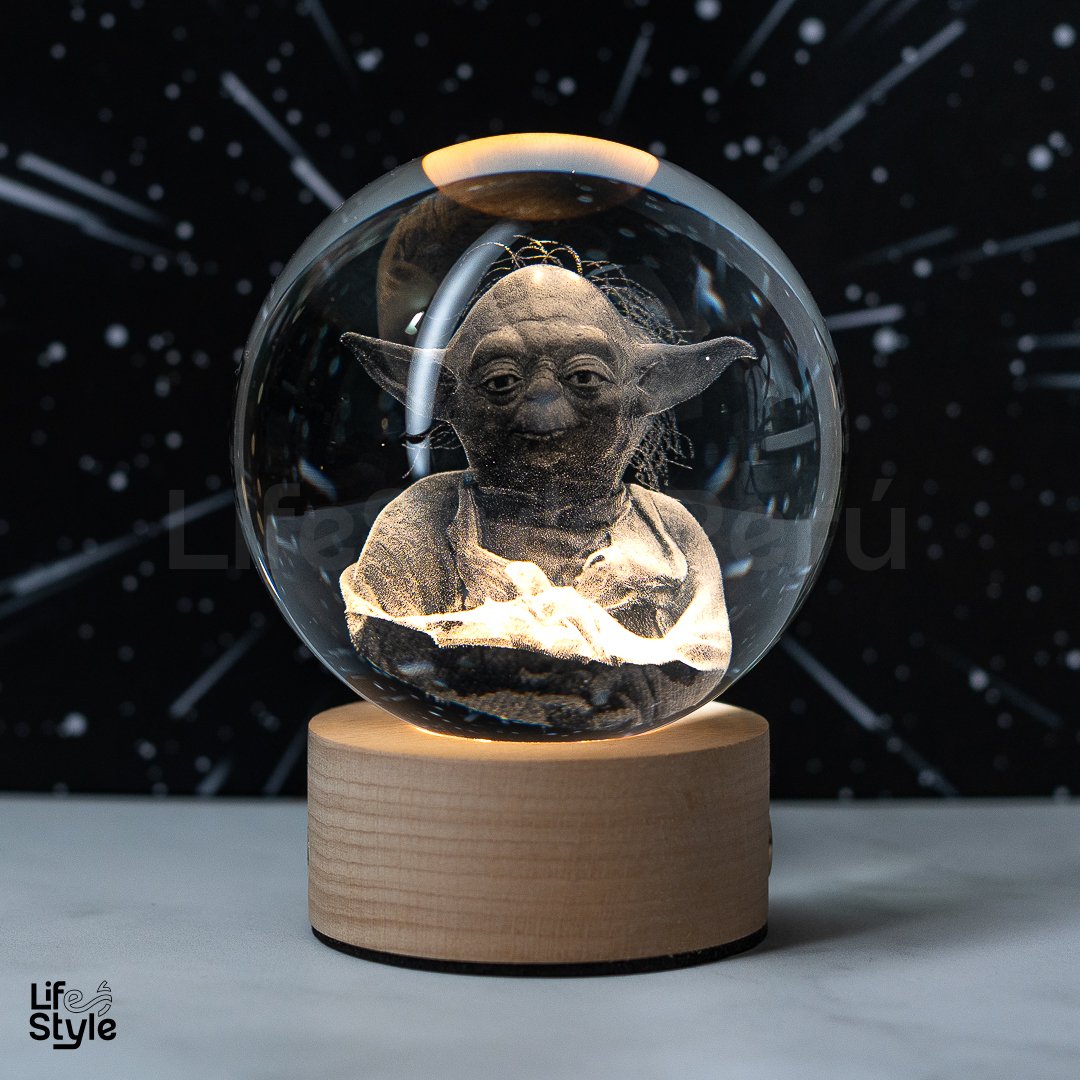 La lámpara de cristal con diseño de Yoda en su interior es una pieza única que combina estilo y funcionalidad. Perfecta para los amantes de este personaje, esta lámpara no solo ilumina tu espacio, sino que también sirve como una decoración llamativa. Su diseño intrincado dentro del cristal captura la esencia del personaje, haciendo que destaque en cualquier habitación.